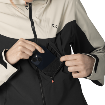Protection durable contre les éléments: la veste Radical Softshell respirante pour femmes, fabriquée à partir de matériaux recyclés, ne doit jamais manquer en ski de randonnée. Vent, chutes de neige, pluie fine et aussi soleil: la météo est souvent capricieuse en montagne. Tu fais face à toutes les éventualités avec la veste Radical Softshell. Cette pièce hybride, innovante et respectueuse de l’environnement, est fabriquée en tissu softshell recyclé double couche robuste. Elle est imperméable au vent et, grâce à son imprégnation DWR sans PFC, fournit une bonne protection contre les pluies fines ou les chutes de neige. La respirabilité élevée de la matière assure une bonne gestion de la température corporelle, quand tu transpires plus lors d’ascensions intenses. Les designers ont porté une attention spéciale sur le confort, en incluant une face intérieure brossée, agréablement douce sur la peau. Les fermetures éclair sous les bras offrent une aération supplémentaire lors de journées de randonnée plus chaudes ou en cas d’efforts plus soutenus. Cette veste, dotée d’une proportion élevée de fibres stretch, possède une coupe athlétique pour une excellente liberté de mouvement dans tous les terrains. Elle est équipée d’une fermeture éclair sur toute la longueur et de plusieurs poches pour ranger les petits objets utiles. La capuche réglable et les bordures élastiques offrent une protection supplémentaire. Le cordon de serrage au bas de veste garantit une bonne tenue et évite que le vêtement ne glisse. En association avec le pantalon Radical Softshell, tu disposes d’un ensemble technique et esthétique très bien adapté au ski de randonnée. Veste Radical Softshell – tout ce qu’il faut pour vivre de belles aventures.